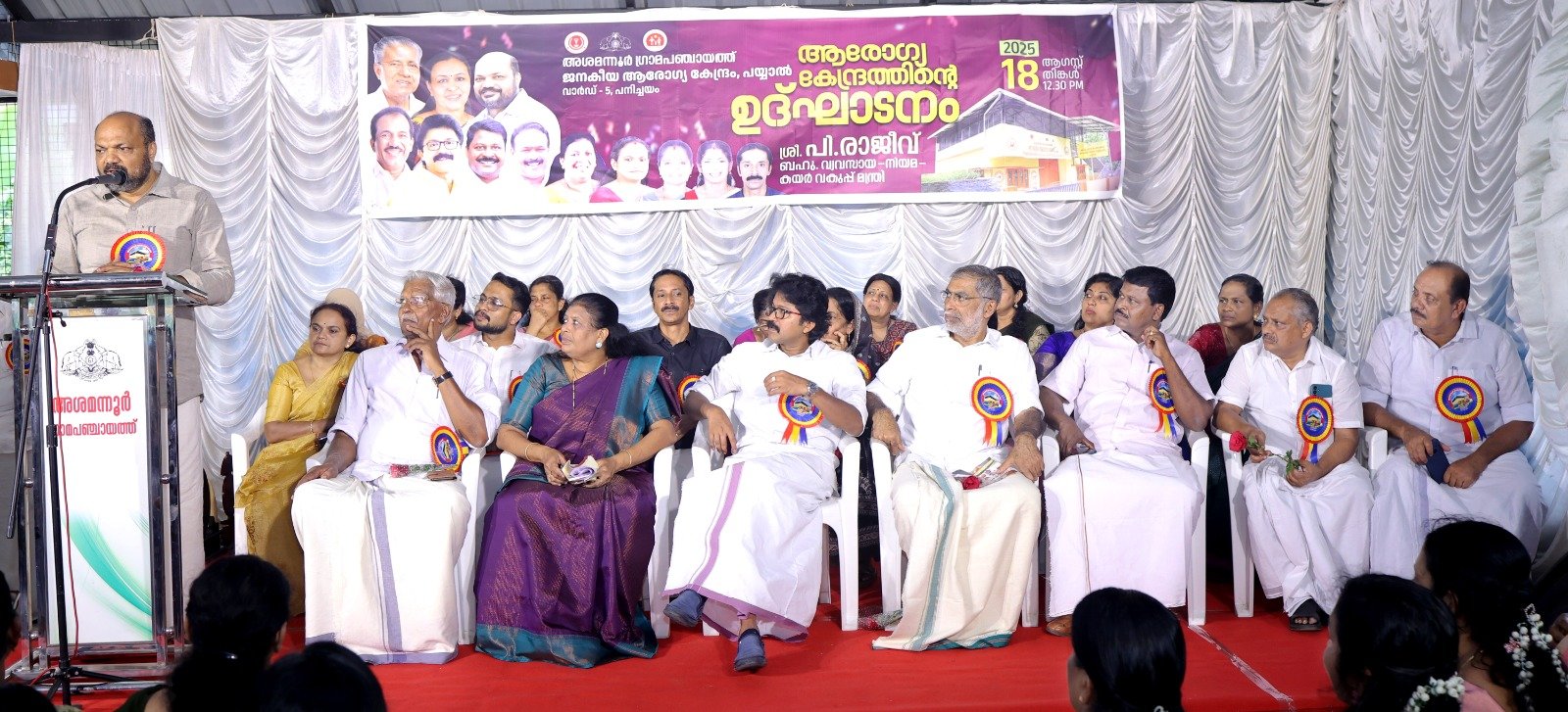 പെരുമ്പാവൂർഃ അശമന്നൂർ ഗ്രാമ പഞ്ചായത്തിന്റെ കീഴിലുള്ള പയ്യാൽ ജനകീയ ആരോഗ്യകേന്ദ്രത്തിന് പുതിയതായി നിർമ്മിച്ച കെട്ടിടത്തിന്റെ ഉദ്ഘാടനം പനിച്ചയം അഞ്ചാം വാർഡിൽ വ്യവസായ മന്ത്രി പി. രാജീവ് നിർവ്വഹിച്ചു.അഡ്വ.എൽദോസ് പി.കുന്നപ്പിള്ളി എം. എൽ.എ യുടെഅധ്യക്ഷതയിൽ നടന് യോഗത്തിൽ ജില്ലാ പഞ്ചായത്ത് പ്രസിഡന്റ് മനോജ് മൂത്തേടൻ ഉപഹാര സമർപ്പണം നടത്തി.സാജു പോൾ എക്സ് എം.എൽ.എ., പഞ്ചായത്ത് പ്രസിഡന്റ് ഷിജി ഷാജി വൈസ് പ്രസിഡന്റ് ജോബി ഐസക്, ജില്ല പഞ്ചായത്ത് മെമ്പർ ഷൈമി വർഗ്ഗീസ്, ബ്ലോക്ക് പഞ്ചായത്ത് അംഗം ലതാഞ്ജലി മുരുകൻ, വി.പി.ശശീന്ദ്രൻ,കെ. പി. വർഗ്ഗീസ്,പഞ്ചായത്ത് അംഗങ്ങളായ സുബി ഷാജി, ഗീത രാജീവ്, അജാസ് യൂസഫ്, എൻ. വി. പ്രതീഷ്, സുബൈദ പരീത്, ലത രാമചന്ദ്രൻ, അഡ്വ. ചിത്ര ചന്ദ്രൻ, സരിത ഉണ്ണികൃഷ്ണൻ,ബ്ലോക്ക് മെഡിക്കൽ ഓഫീസർ ഡോ: സിന്ധു ടി. പി, ഡോ:ഷീനാമോൾ ടി. കെ,, അജിത്ത്, ഷാജി സരിഗ, സുജു ജോണി, എന്നിവർ സംസാരിച്ചു. .സ്ഥലം വാങ്ങുന്നതിനായി 1 ലക്ഷം രൂപ സംഭാവന നൽകിയ എൽദോസ് വൈദ്യരേയും കെട്ടിടം നിർമ്മിച്ച കോൺട്രാക്ടർ സി. വി. സുഗുതനേയും മന്ത്രി ചടങ്ങിൽ ആദരിച്ചു. നാട്ടുകാരുടെ സഹകരണത്തോടെ 5.5 സെന്റ് സ്ഥലം 7 ലക്ഷം രൂപയ്ക്ക് വാങ്ങിയാണ് 55 ലക്ഷം രൂപ മുടക്കി ആധുനിക സൗകര്യങ്ങളോടെ ജനകീയ ആരോഗ്യ കേന്ദ്രം നിർമ്മിച്ചത്..