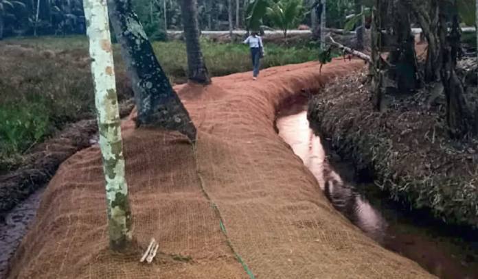 വെങ്ങോല പഞ്ചായത്ത് 23–-ാംവാർഡിൽ പാറപ്പുറത്ത് താഴംതോട് ശുചീകരിച്ച് ബണ്ട് സംരക്ഷണത്തിനായി കയർ ഭൂവസ്ത്രം വിരിച്ചുതുടങ്ങി. ശാലേം ആലിൻചുവട്, നെടുങ്ങോട്ട്, പാറപ്പുറത്ത് താഴം, തുമ്മാരുകുടിത്താഴം പാടശേഖരങ്ങളിലൂടെ കടന്നുപോകുന്ന തോട് ബണ്ടിലാണ് കയർ ഭൂവസ്ത്രം വിരിച്ച് മനോഹരമാക്കുന്നത്. വാർഡ് മെമ്പർ ബേസിൽ കുര്യാക്കോസിന്റെ നേതൃത്വത്തിൽ 30 തൊഴിലുറപ്പു തൊഴിലാളികൾ തോടും ബണ്ടും ശുചീകരിച്ചശേഷമാണ് കയർ ഭൂവസ്ത്രം വിരിച്ചുതുടങ്ങിയത്. അഞ്ചു ലക്ഷം രൂപയാണ് ചെലവ്. കാൽനടക്കാർക്കും പ്രഭാത നടപ്പുകാർക്കും പദ്ധതി പ്രയോജനം ചെയ്യും. ഇതുവഴി കടന്നുപോകുന്ന പാടശേഖങ്ങളെല്ലാം സജീവമായി നെൽക്കൃഷി നടത്തുന്നവയാണ്.