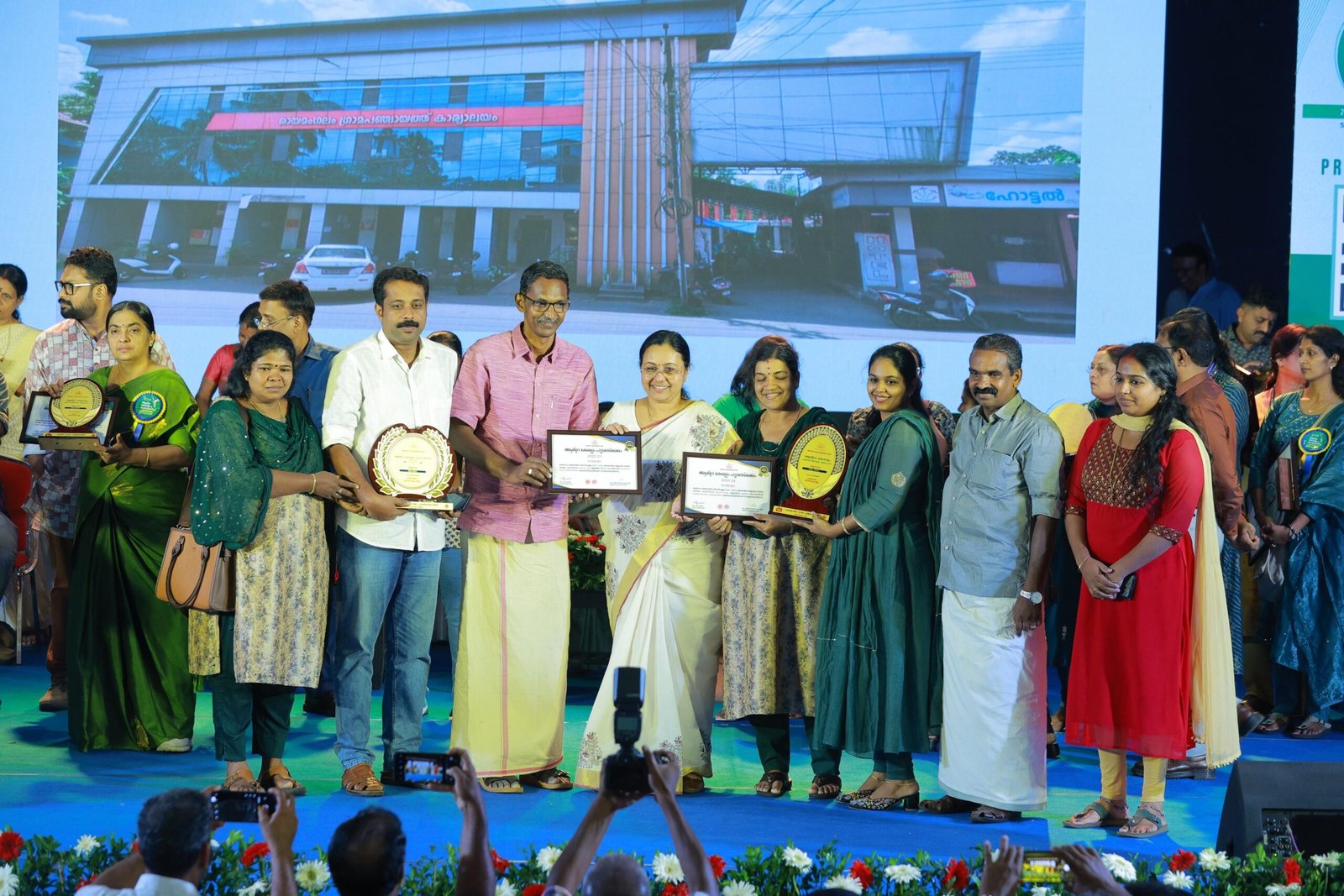 രായമംഗലം: ആരോഗ്യ മേഖലയിൽ മികച്ച പ്രവർത്തനങ്ങൾ കാഴ്ചവെച്ച തദ്ദേശസ്വയംഭരണ സ്ഥാപനങ്ങൾക്കുള്ള 2022-23, 2023- 24 വർഷങ്ങളിലെ ആർദ്രകേരള പുരസ്കാരം ആരോഗ്യ ശിശുവികസന വകുപ്പ് മന്ത്രി വീണ ജോർജ്ജിൽ നിന്നും രായമംഗലം ഗ്രാമപഞ്ചായത്തിനു വേണ്ടി പഞ്ചായത്ത് പ്രസിഡൻ്റ് എൻ പി അജയകുമാറിൻ്റെ നേതൃത്വത്തിൽ ഏറ്റുവാങ്ങി. തിരുവനന്തപുരം ടാഗോർ തീയറ്ററിൽ നടന്ന സമ്മേളനത്തിൽ തദ്ദേശ വകുപ്പ് മന്ത്രി എം ബി രാജേഷ് അദ്ധ്യക്ഷത വഹിച്ചു.