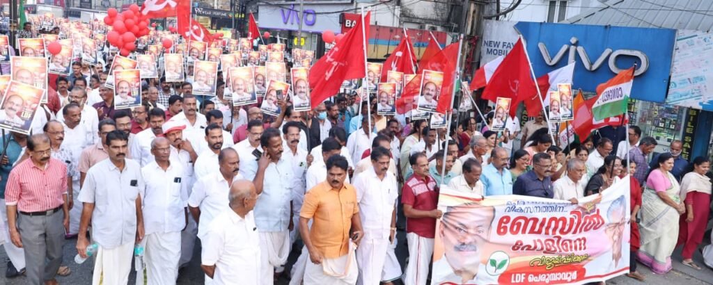 പെരുമ്പാവൂർ: വരാനിരിക്കുന്ന തിരഞ്ഞെടുപ്പിന്റെ ചൂടിലേക്ക് പെരുമ്പാവൂർ മണ്ഡലം ഉണർന്നു കഴിഞ്ഞു എന്നതിന്റെ വ്യക്തമായ സൂചന നൽകി എൽഡിഎഫ് സ്ഥാനാർഥി ബേസിൽ പോളിന്റെ ആദ്യ റോഡ് ഷോ. ആവേശക്കടലായി മാറിയ പ്രവർത്തകരെയും ജനങ്ങളെയും സാക്ഷി നിർത്തി യൂണിയൻ കവലയിൽ നിന്നാരംഭിച്ച റോഡ് ഷോ മണ്ഡലത്തിലെ ഇടതുമുന്നണിയുടെ കരുത്ത് വിളിച്ചോതുന്നതായിരുന്നു. നൂറുകണക്കിന് പ്രവർത്തകരുടെ അകമ്പടിയോടെ വാദ്യമേളങ്ങളും മുദ്രാവാക്യങ്ങളുമായി നീങ്ങിയ റോഡ് ഷോ യാത്രി നിവാസിൽ സമാപിച്ചു.
