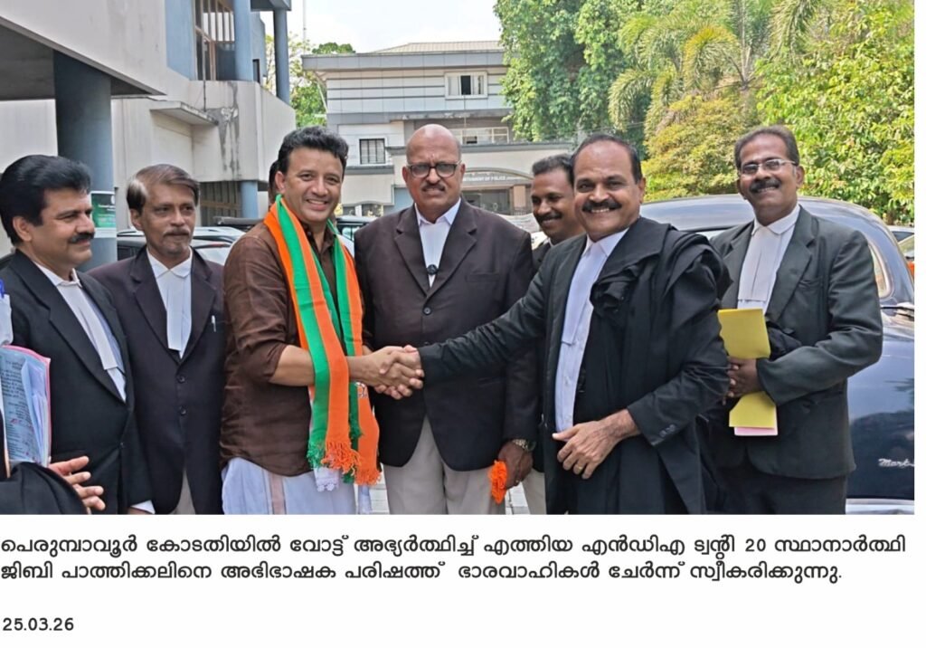 ട്വന്റി20-എൻ.ഡി.എ സ്ഥാനാർത്ഥി ജിബി പാത്തിക്കലിന്റെ പ്രചാരണം രണ്ടാം ഘട്ടത്തിലേക്ക് കടന്നു. ഭൂരിഭാഗം വോട്ടർമാരെയും നേരിൽ കണ്ട് ഒന്നാം ഘട്ട പ്രചാരണം പൂർത്തിയാക്കിയ സ്ഥാനാർത്ഥി വരും ദിവസങ്ങളിൽ വാഹന പര്യടനം ആരംഭിക്കും. കഴിഞ്ഞ ദിവസം പെരുമ്പാവൂർ കോടതി സമുച്ചയത്തിൽ എത്തി അഭിഭാഷകരുടെയും ഉദ്യോഗസ്ഥരുടെയും വോട്ട് അഭ്യർത്ഥിച്ചു. അഭിഭാഷക പരിഷത്ത് നേതാക്കളായ ജയപാലൻ, കെ സി മുരളീധരൻ, സജീവ് പി മേനോൻ തുടങ്ങിയവർ ചേർന്ന് സ്ഥാനാർത്ഥിയെ സ്വീകരിച്ചു. തുടർന്ന് തൊടാപ്പറമ്പ്, മാവേലിപ്പടി, തോട്ടുവ, ചേരാനല്ലൂർ, കുറിച്ചിലക്കോട്, കോടനാട്, ആലാട്ടുചിറ, പാണംകുഴി, കൊമ്പനാട്, വേങ്ങൂർ, വെങ്ങോല, അല്ലപ്ര, ഓണംകുളം, അറയ്ക്കപ്പടി, വളയൻചിറങ്ങര എന്നിവിടങ്ങളിലും സ്ഥാനാർത്ഥി സന്ദർശനം നടത്തി.